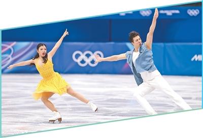 中国队组合王诗玥(左)/柳鑫宇在花样滑冰项目冰舞韵律舞比赛中。新华社记者 陈益宸摄