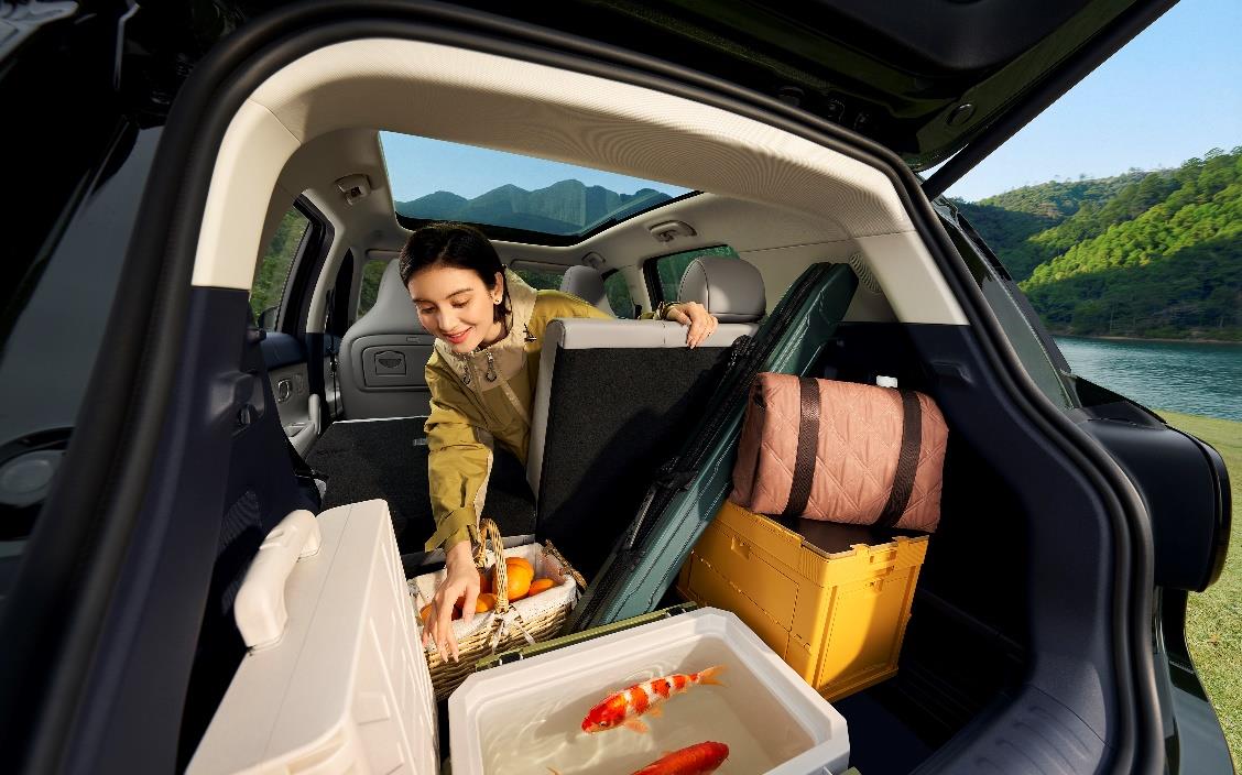 空间上,4270mm车长做到88.1%得房率,后排能放平,后备厢有个106L可冲洗下沉储物舱——生鲜漏水、露营湿装备、泥鞋,直接冲。主驾靠背带折叠小桌板,全车34处储物空间,处处透着“设计过过日子”的实在感。